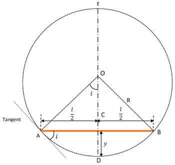 \sin i = \left ( \frac {AC}{OA} \right ) = \left ( \frac {\frac {l}{2}}{R} \right )