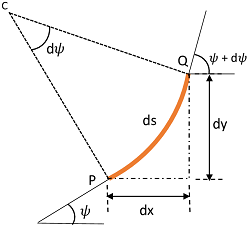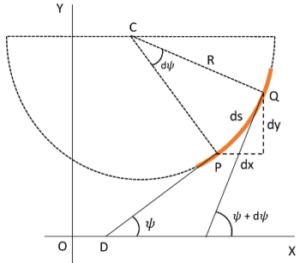 और वृत्त चाप PQ कि लम्बाई होगी \quad ds = R \ d \psi