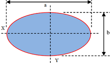 इस वस्तु के लिए X और Y दिशाओँ में अक्ष क्रमशः ( a ) और ( b ) हैं।