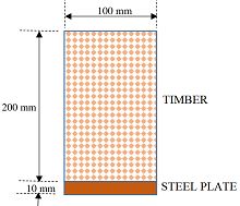 - तनाव शक्ति ( tensile strength ) के मामले में स्टील बहुत मजबूत होता है परन्तु संपीड़न शक्ति ( compressive strength ) के लिए कमजोर होता है। जबकि लकड़ी संपीड़न शक्ति ( compressive strength ) के मामले में मजबूत और तनाव शक्ति ( tensile strength ) में कमजोर होती है। इसलिए, जब लकड़ी के बीम को सिम्पली सपोर्टेड बीम ( simply supported beam ) के तरह उपयोग में लाया जाता है तब, स्टील के प्लेट को लकड़ी के प्लेट के नीचे बोल्ट किया जाता है। नीचे के तरफ स्टील प्लेट लगे हुए एक लकड़ी के बीम को चित्र में दिखाया गया है।